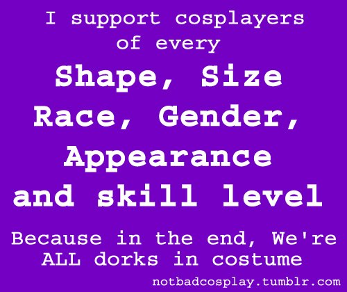 So many times I see people post and talk on how the cosplay bullying shouldn't happen, or how we should support each other and it shouldn't matter skill level, location, gender, sexual appeal, or any of that other crap.
